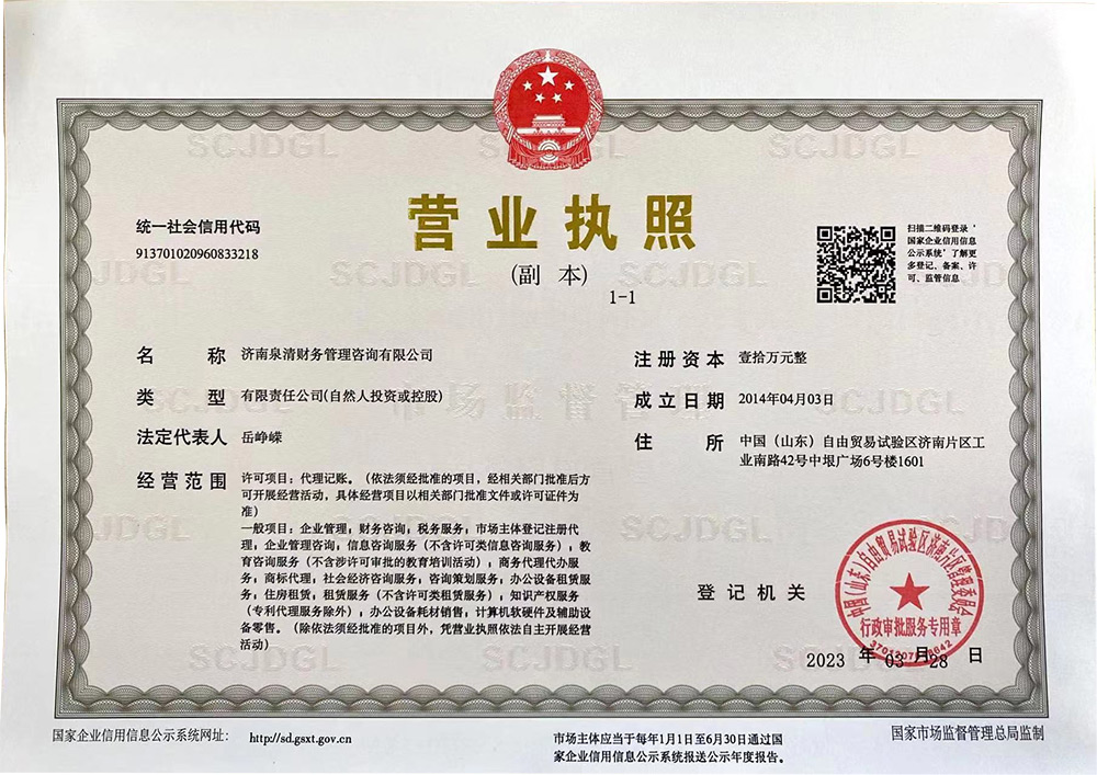 濟(jì)南泉清財(cái)務(wù)管理咨詢有限公司由濟(jì)南市財(cái)政局批準(zhǔn)、經(jīng)濟(jì)南市工商行政管理局登記設(shè)立,是在原山東某大型會(huì)計(jì)師事務(wù)所財(cái)務(wù)代理部基礎(chǔ)上改制成立的具有法定執(zhí)業(yè)資格的會(huì)計(jì)代理機(jī)構(gòu)。公司技術(shù)團(tuán)隊(duì),其中:中職稱2人,初職稱4人。并有兼職注冊(cè)會(huì)計(jì)師4人,注冊(cè)稅務(wù)師3人,注冊(cè)造價(jià)師2人,常年為公司提供業(yè)務(wù)支持與咨詢。